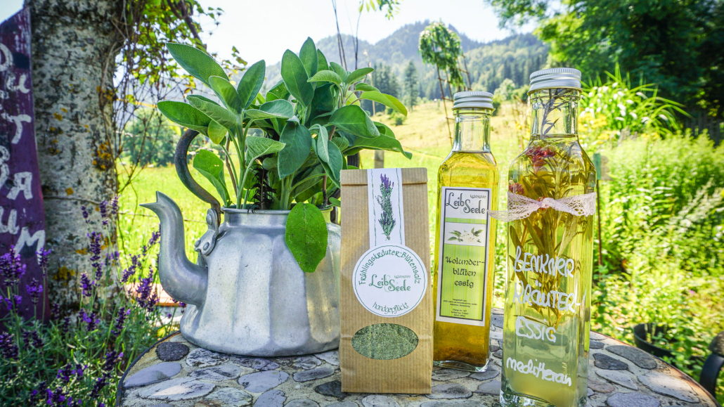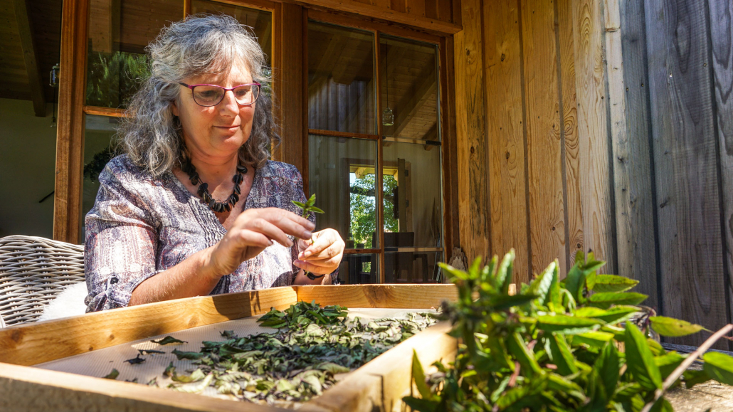 Diesen Fokus möchte Gaby Kamm im nächsten Jahr ganz bewusst in den Urlaub ihrer Gäste bringen, sofern sie das wollen. Als ausgebildete Phythotherapeutin liebt sie Pflanzen und Kräuter und wendet deren Heilkraft in ihrer Familie erfolgreich an. So erntet und zupft sie ihre Kräuter aus dem Garten, stellt unter anderem Sirup und Essig damit her und trocknet schonend jedes einzelne Blatt für ihre Tees und Kräutersalze. Sie ist davon überzeugt, dass Pflanzen über das Physische hinaus wirken und deshalb auch eine wichtige Botschaft für die Menschen haben können. „Pflanzen können etwas im Innern bewegen. Oft geht unseren Gästen noch Wochen später etwas durch den Kopf, was sie im Urlaub hier in Kontakt mit einer Pflanze erlebt oder erfahren haben.“