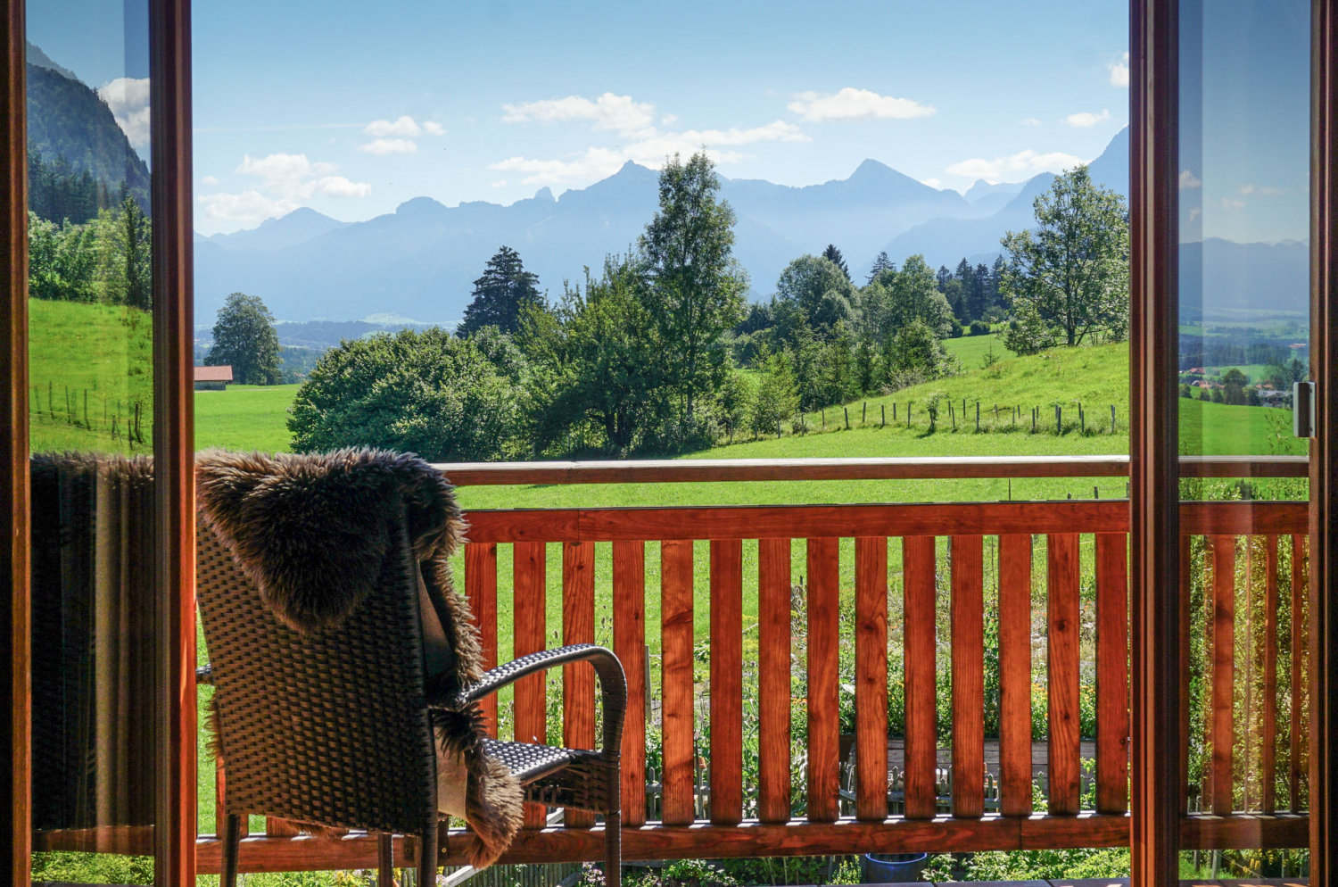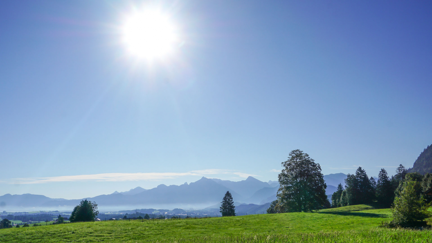 Schon bei der Anfahrt beginnt das Aufatmen: die Allgäuer und Ammergauer Alpen behüten die Stadt Füssen wie steinerne Wächter, die Wiesen sind sattgrün gefärbt und die Sonne gibt sich alle Mühe, Alltagsgedanken schnell zu vertreiben. Oberhalb von Weißensee zweigt ein Weg nach Benken ab, der hier endet – mitten in der Idylle. Der Füssener Ortsteil liegt auf 920 Meter Höhe unterhalb des Zirmgrats, einem Höhenzug mit der höchstgelegenen Burgruine Deutschlands. Auf dem Falkenstein wollte Märchenkönig Ludwig II. nach Neuschwanstein die Allgäuer Landschaft mit einem weiteren Märchenschloss zieren und von oben den Schlosspark bewundern, der sein Herz so sehr berührte. Leider kam es dazu nicht mehr, doch träumen kann man hier wirklich herrlich.