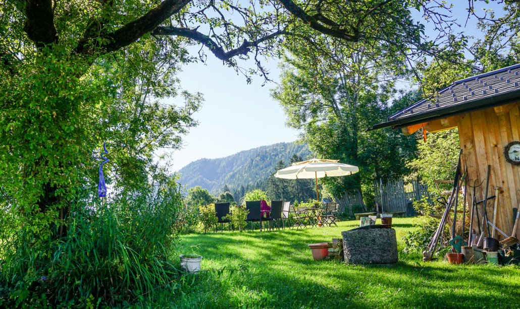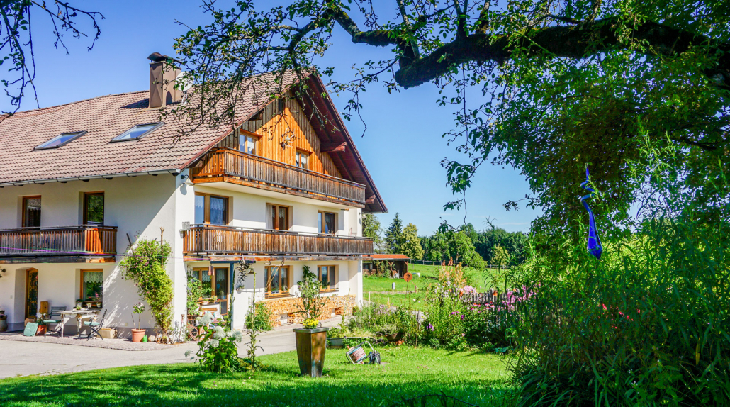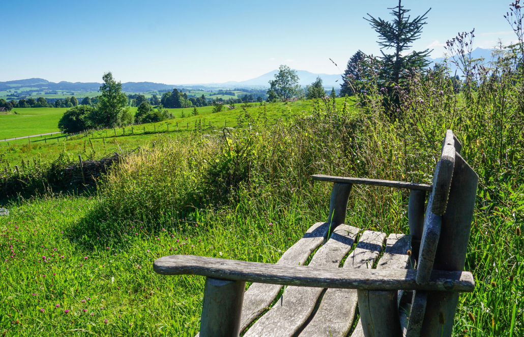 Als Familie Kamm den Hof erwarb, gehörten auch die Ferienwohnungen dazu. Nach und nach renovierten Gaby und Helmut Kamm sie in Eigenregie – ganz nach ihren Vorstellungen mit viel Holz und Liebe. Auch die Kinder waren immer mit Begeisterung dabei. Ihr Konzept für die Ferienwohnungen: Entspannen erlaubt! „Die Gäste kommen aus einem vollen und durchgetakteten Alltag zu uns. Deshalb ist es doch das Schönste, wenn sie sich hier die Zeit nehmen können, ganz bewusst anzukommen und erst einmal nichts zu tun. Bei uns können sie alle Rollen des Alltags fallen lassen und sich ganz mit sich selbst beschäftigen.“ Ein stiller Luxus, den die Gäste in der Allgäuer Natur ringsherum genießen können, aber vor allem auch im naturnahen Kräutergarten. Wo früher nur eine eingezäunte Wiese war, ist jetzt ein buntes Traumland entstanden, ausgerichtet an der Permakultur und den Elementen Luft, Erde, Feuer, Wasser, Holz und Metall. So gibt es unter anderem einen Duftraum und eine Feuerstelle, die die Gäste nutzen können, ebenso den traumhaften Frühstücksplatz.