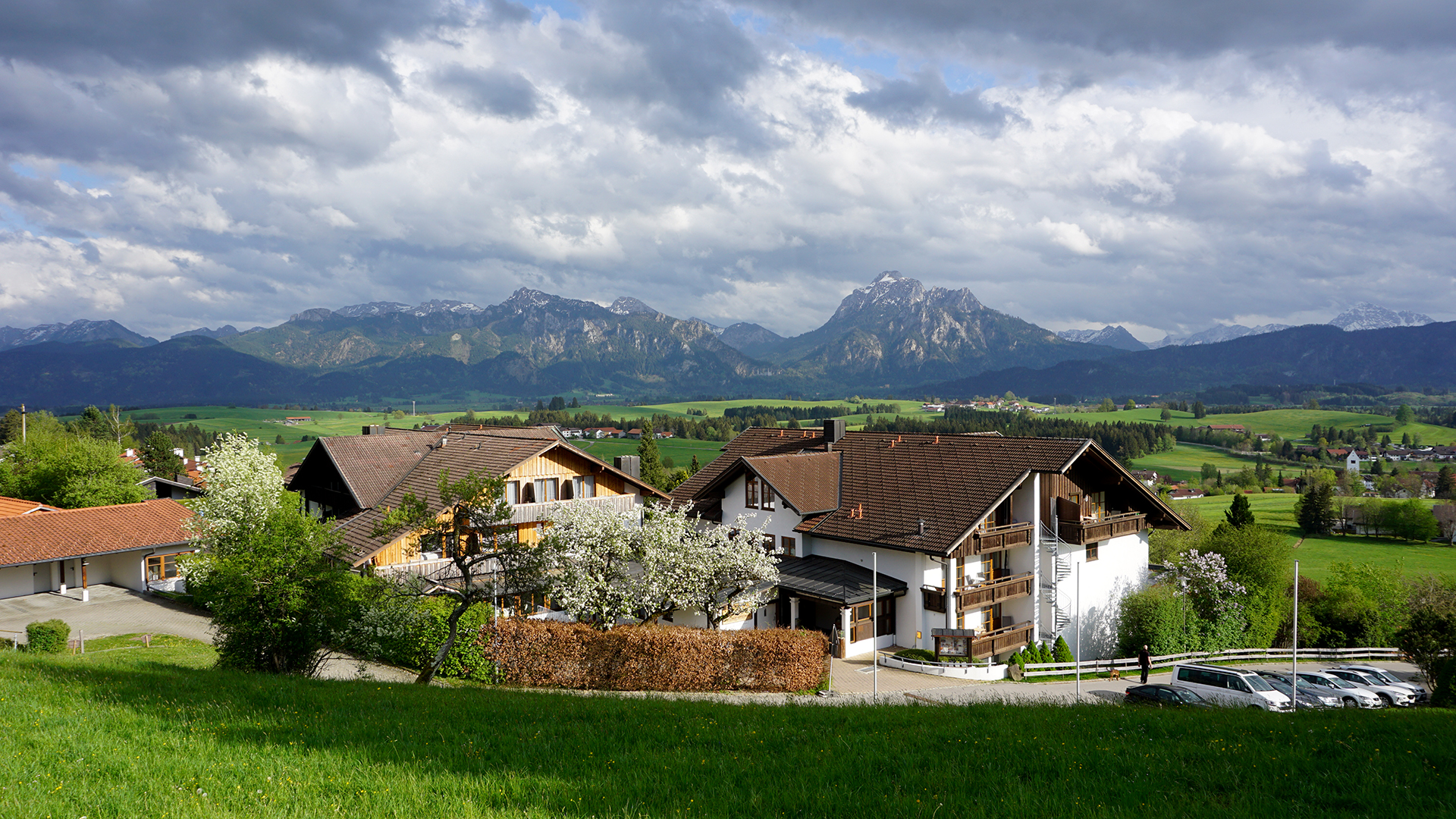 Was für eine Lage! Wie eine grüne Insel liegt „Hartungs Hoteldorf“ im Füssener Ortsteil Hopfen am See auf einer Anhöhe über dem Hopfensee mit Panoramablick auf Berge, Wiesen und die Königsschlösser Neuschwanstein und Hohenschwangau. Und tatsächlich ist das Dreisternehaus eine kleine Welt für sich: Fünf Häuser mit 140 Betten sowie Ferienwohnungen auf 1,2 Hektar Fläche mit Schwimmbad, Wellness- und Saunabereich, Panoramabar und Restaurant – da ist viel Raum ganz für sich zu sein und eine Auszeit zu genießen.