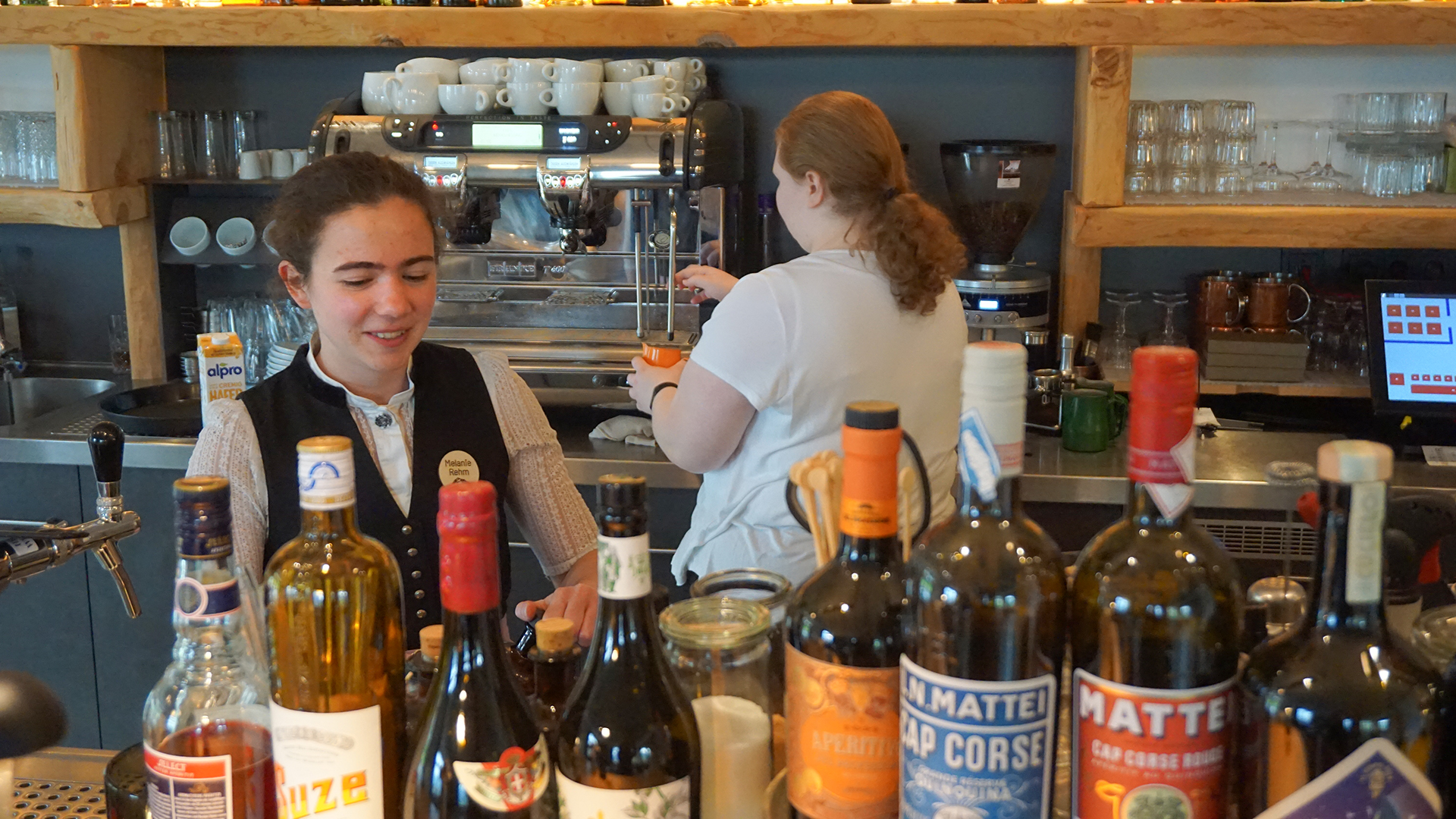 Melanie Rehm (li.) und Belinda Langner (re.) sind zwei dieser „Herzensmitarbeiterinnen“. Beide kamen über ein Probearbeiten bzw. ein Praktikum zu ihrer Ausbildung als Hotelfachfrau. Belinda Langner hat diese bereits abgeschlossen, Melanie Rehm ist gerade mittendrin. Schon während der Ausbildung lernen die Mitarbeiter alle Abteilungen des Hotels kennen, so dass sie auch mal einspringen können, wenn beim Housekeeping oder im Restaurant jemand ausfällt. „So kann ich gut sehen und auch besser verstehen, was alles hinter der Arbeit in den einzelnen Abteilungen steckt. Jeder hilft hier jedem. Auf jeden Fall ist es sehr abwechslungsreich im Hotel, jeder Tag ist anders“, erklärt die Allgäuerin Melanie Rehm. Ihre Kollegin Belinda Langner, die ursprünglich aus Berlin kommt, arbeitet hauptsächlich an der Rezeption und im Barbetrieb mit Kaffee am Nachmittag und Cocktails am Abend, wo sie mittlerweile am liebsten ist. „Mich hat von Anfang an das Miteinander im Team fasziniert. Schon beim Probearbeiten hat alles gleich gepasst und ich habe mich hier willkommen gefühlt.“