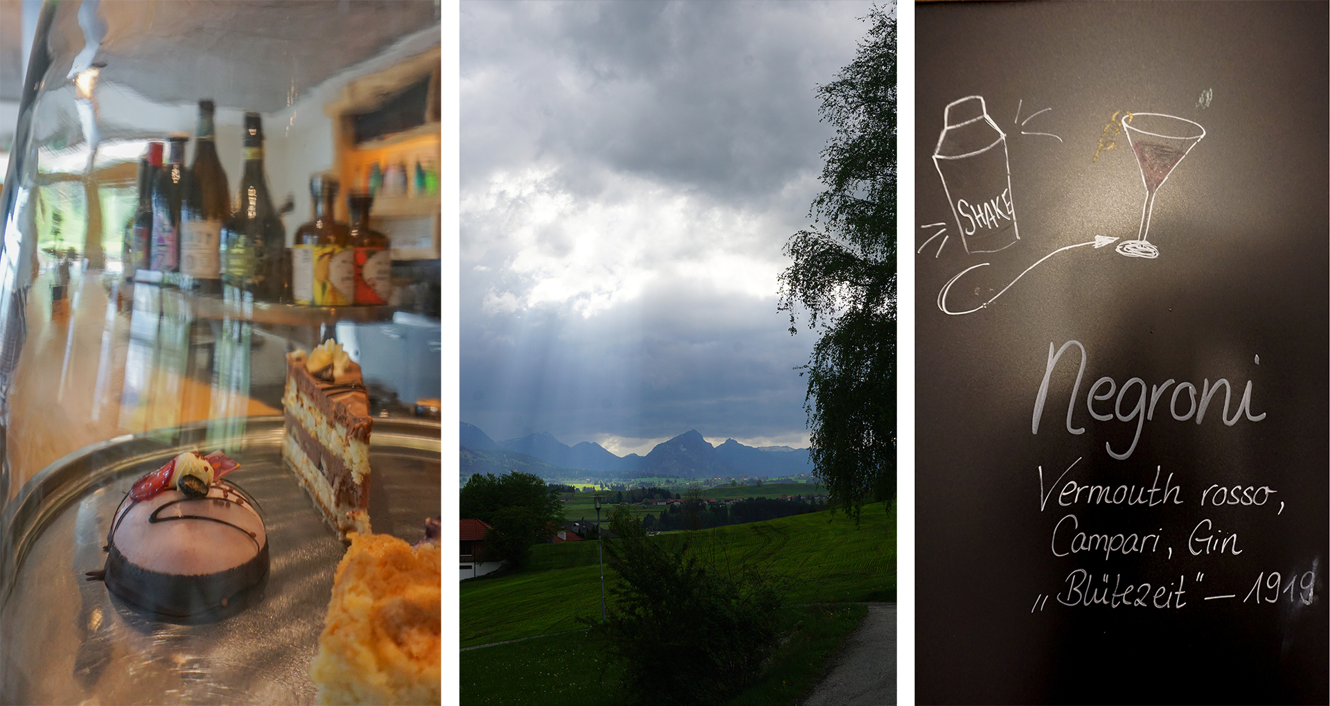Es wird Abend, Zeit für eine kleine Pause im der Panoramabar. Durch die großen Fenster lässt sich das „Allgäuwetter mit Charakter“ besonders gut betrachten. Jeden Tag setzen Sonnen, Wolken und die Jahreszeiten andere Akzente in der Landschaft. Bilder an der Wand braucht es eigentlich nicht. In fast jeder Gästebewertung spielen die Ausblicke von den Zimmern, im Restaurant oder im Wellnessbereich die Hauptrolle. Kein Wunder, so wie Hartungs Hoteldorf über der Landschaft thront. Eine kleine Welt für sich, umgeben von allem, was das Allgäu so besonders macht.