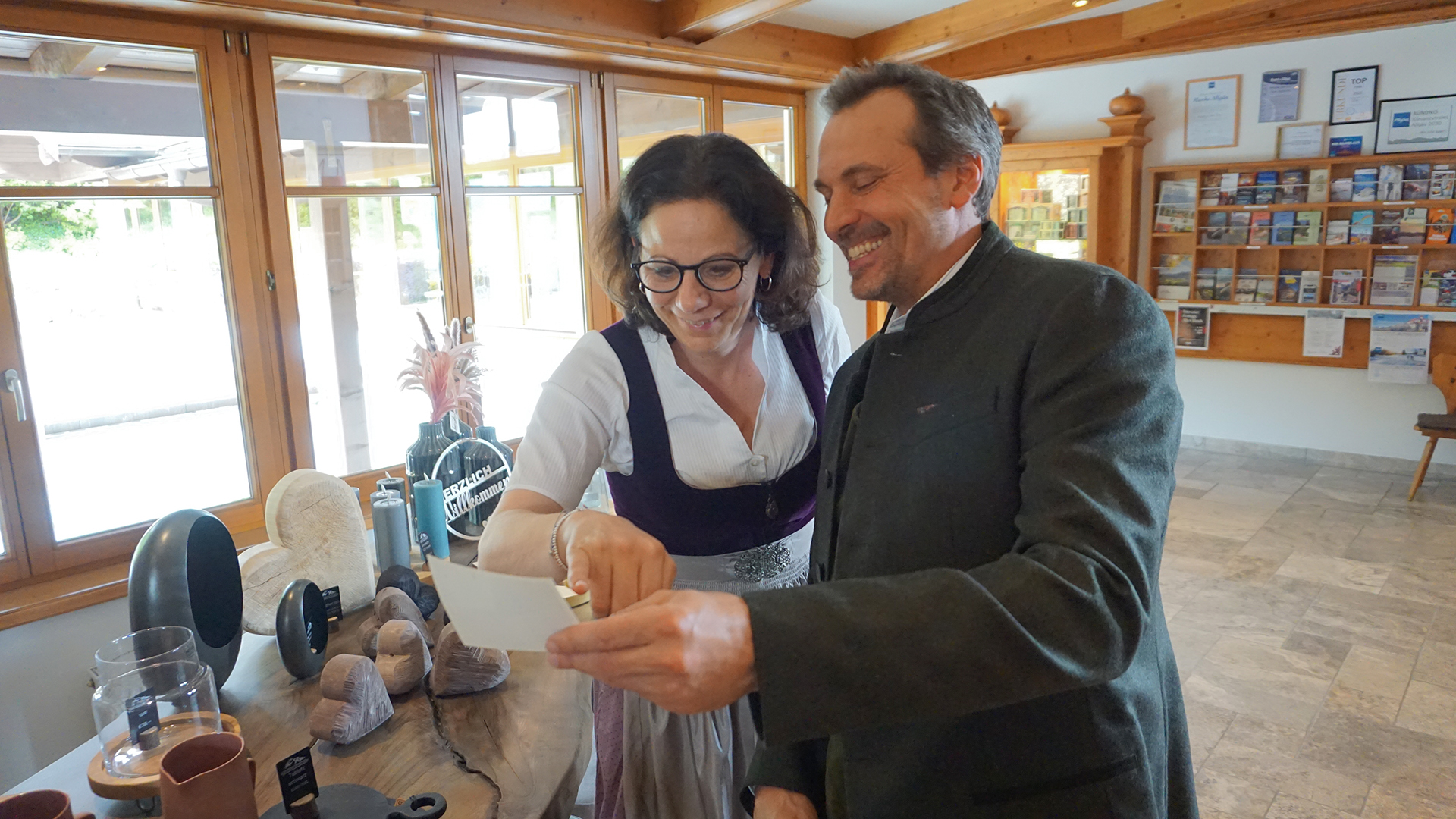 Die Chefin ist „das Mädchen für alles“, wie sie ihre Arbeit selbst zusammenfasst und auch nach 21 Jahren noch immer von deren Vielseitigkeit begeistert. Sie hat ihren Mann beim Studium in Bochum kennengelernt und sich dann entschieden, ins Allgäu mitzukommen. „Anfangs war das nicht so einfach für mich. Von der Großstadt hierher aufs Land – das war eine Herausforderung. Aber heute sind die Menschen und die Natur das, was ich am Allgäu am meisten mag.“