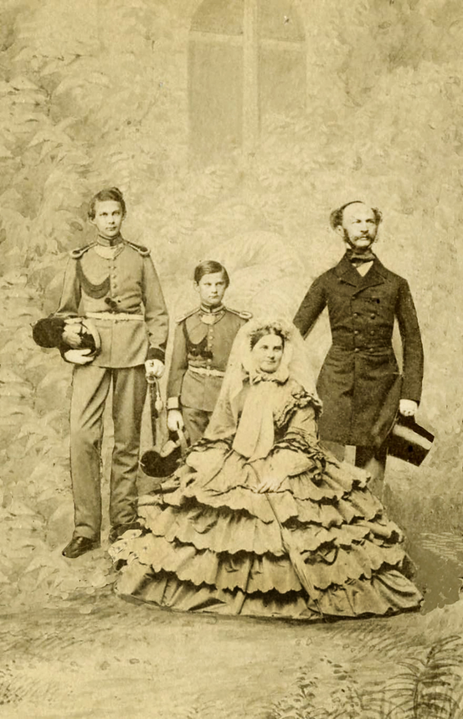 von li. nach re.: Kronprinz Ludwig, Prinz Otto, Königin Marie von Bayern, König Max II. von Bayern