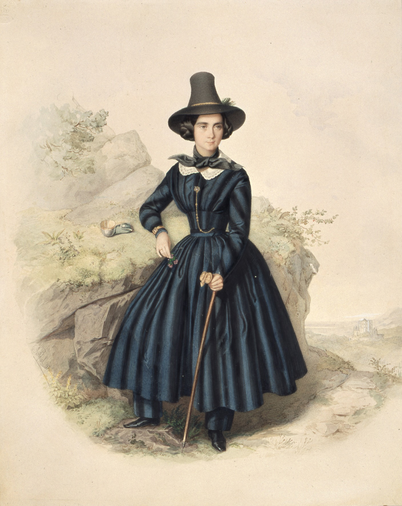Ein für die Königin speziell angefertigtes Wanderkostüm brachte die Lösung. Auf die sonst unumgänglichen Unter- und Reifröcke wurde verzichtet und die Rocklänge um mehrere Zentimeter gekürzt. Damit die königlichen Beine trotzdem bedeckt blieben, erhielt das Wanderkostüm den eigentlichen Clou: eine Hose. Dass eine Frau und dazu noch eine Königin in diesen Tagen eine Hose trug, war gewissermaßen ein No-Go. Deswegen stellte der lange Überrock aus Loden das elementare, unverzichtbare Stück des Kostüms dar. So sah man die Hose zumindest nicht auf den ersten Blick.