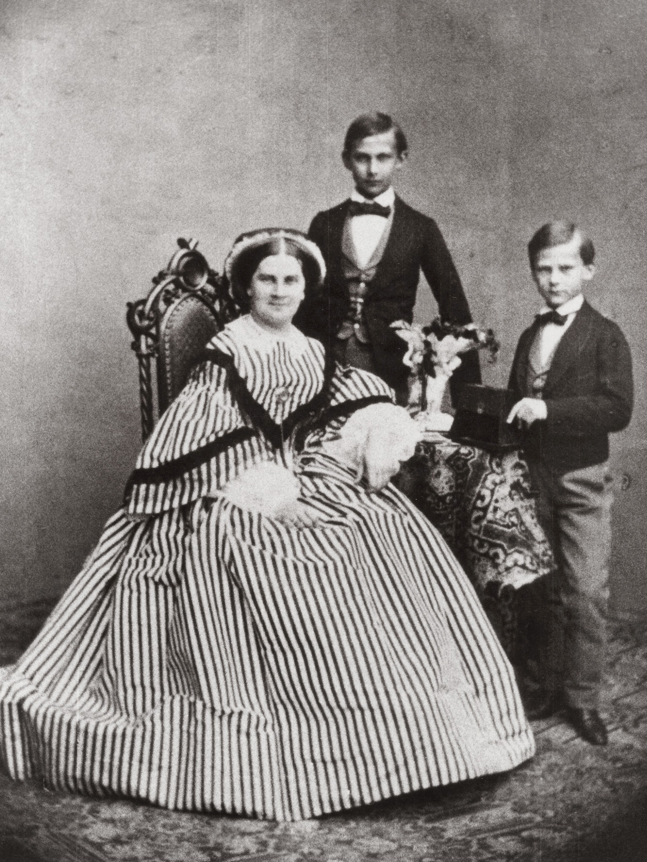 Königin Marie von Bayern mit ihren Söhnen Kronprinz Ludwig (li.) und Prinz Otto (re.) © Sammlung Jean Louis, München