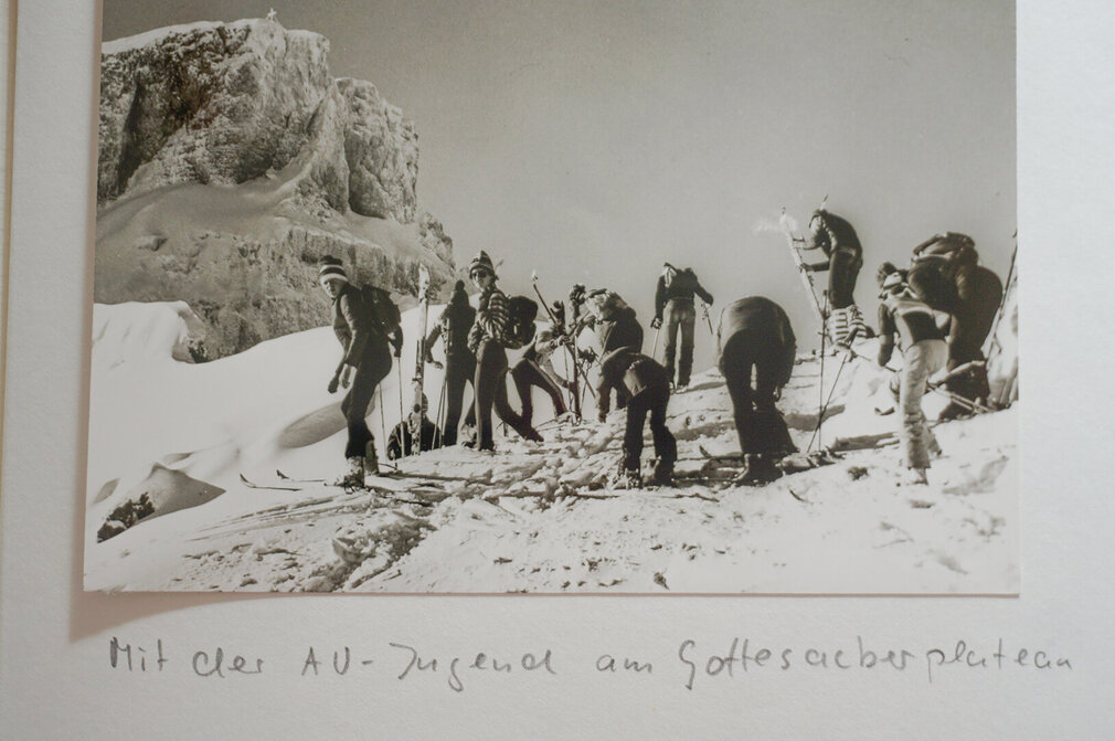 Begeistert erzählt sie auch von ihrer Zeit mit der Jugendgruppe der Alpenvereinssektion Füssen, die sie mit ihrem Mann zwölf Jahre lang leitete. Wenn sie heute in Füssen "Ehemalige" aus dieser Gruppe trifft, schwelgt sie gerne gemeinsam mit ihnen in Erinnerungen. „Das war herrlich mit den jungen Buben und Mädchen! Wir haben zum Beispiel zweiwöchige Zeltlager und Skitouren in Slowenien, in Italien und Griechenland und am Kofel Skirennen mit Riesenslalom gemacht. Mehrmals sind wir den Säuling-Ostgrat am Hochseil gegangen – da haben die Eltern später geschluckt, als sie davon erfahren haben. Aber wenn die Jungen gut zuhören, kann man so was machen, da ist nie etwas passiert."