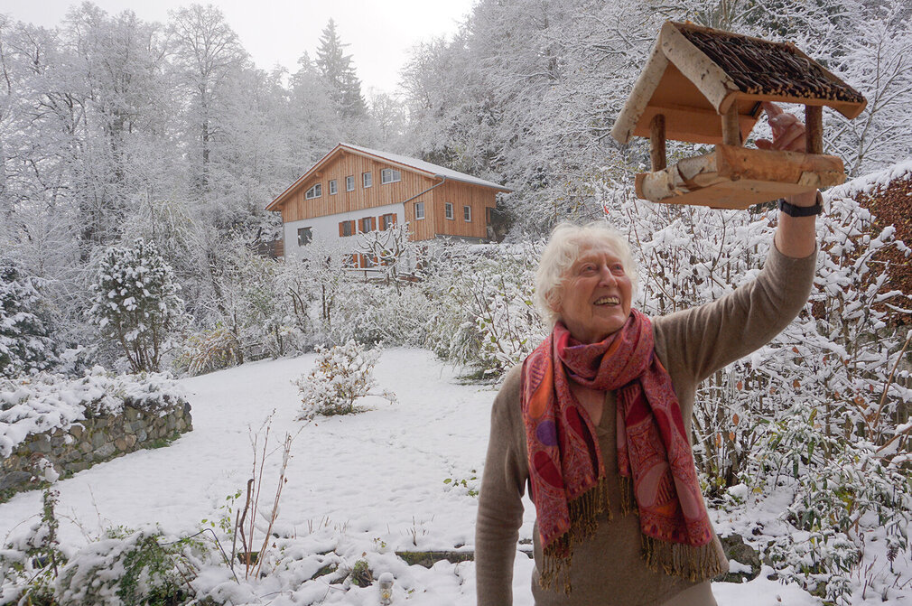Mittlerweile ist es Winter in Füssen: Inge Jäger füttert ihre Vögel im Garten und wünscht sich, noch viel in den Bergen unterwegs sein zu können. Ihre Eltern blieben dem Bergsteigen bis in hohe Alter treu - immer begleitet von ihren Dackeln. Die wurden notfalls auch im Rucksack weitergetragen, wenn der Weg zu steil oder unwegsam war.
