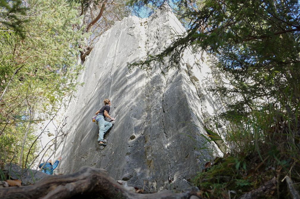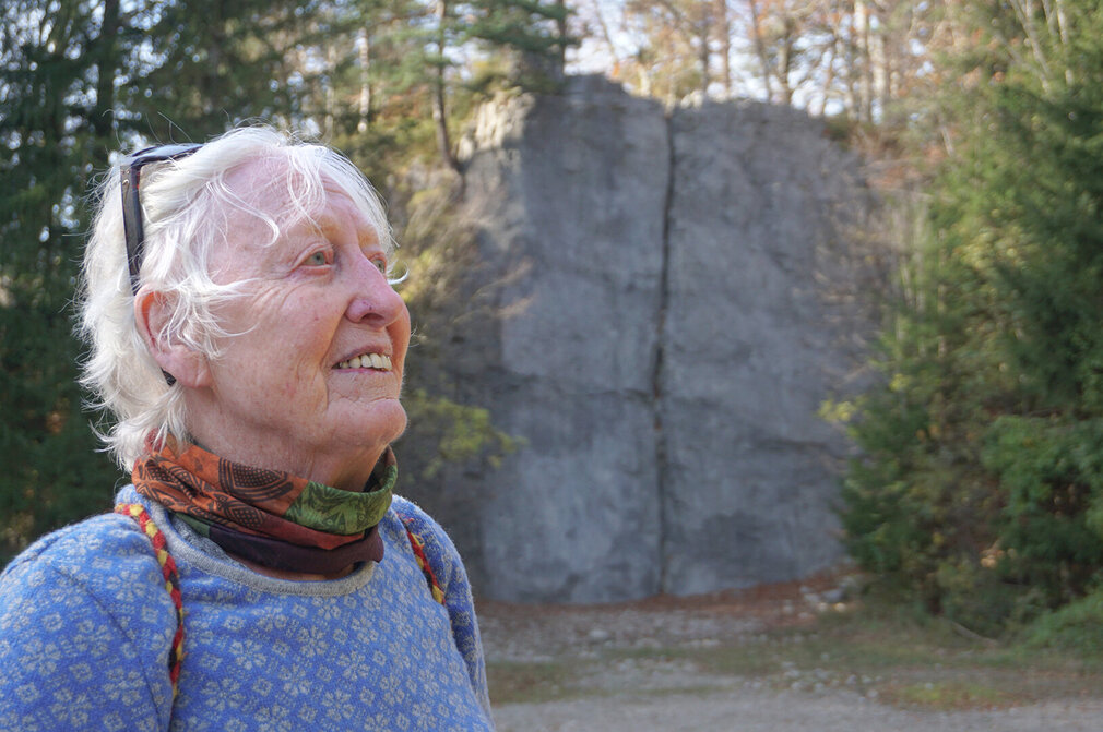 Auch sie selbst ist bisher zum Glück vor schweren Verletzungen verschont geblieben, außer einer ausgekugelten Schulter, die sie sich bei einem Sturz während einer Skitour zugezogen hat. Bei ihrer Runde zum Kalvarienberg hält sie heute noch gerne an der Roten Wand an, zwei Felsen, die Kletterer zum Üben nutzen und an denen sie früher die Jugendlichen auf die Klettertouren im Hochgebirge vorbereitet hat.