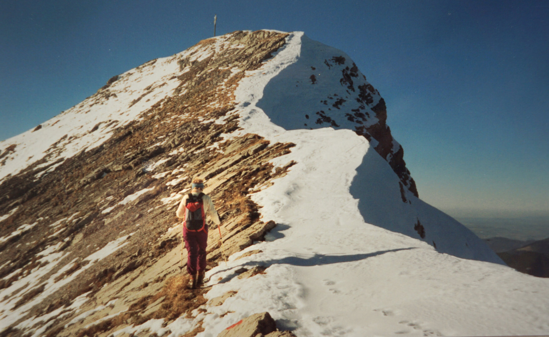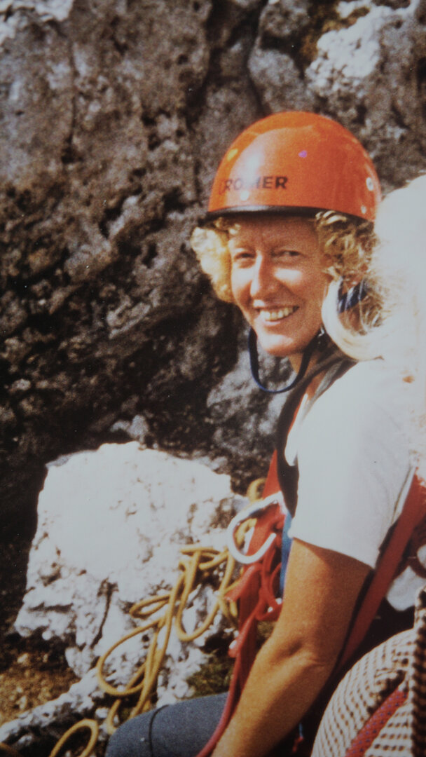 Auch sie selbst ist bisher zum Glück vor schweren Verletzungen verschont geblieben, außer einer ausgekugelten Schulter, die sie sich bei einem Sturz während einer Skitour zugezogen hat. Bei ihrer Runde zum Kalvarienberg hält sie heute noch gerne an der Roten Wand an, zwei Felsen, die Kletterer zum Üben nutzen und an denen sie früher die Jugendlichen auf die Klettertouren im Hochgebirge vorbereitet hat.