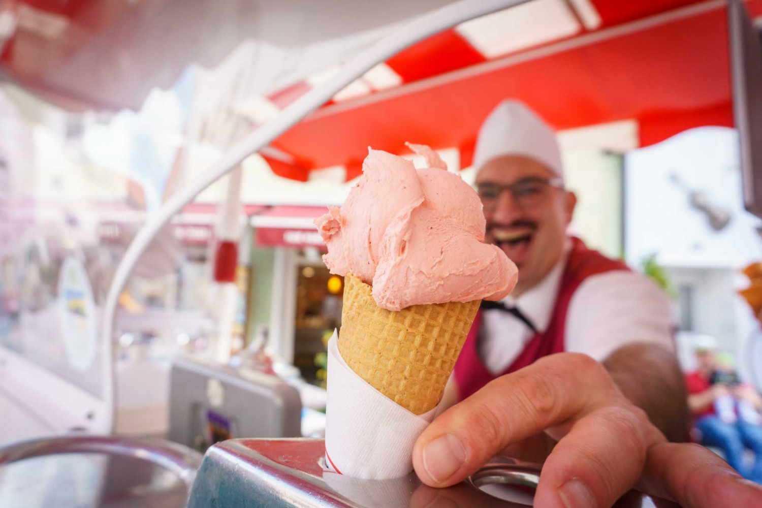 Beim Naschen ein schlechtes Gewissen? Ganz und gar nicht! Dieser Mann kann da ganz unbekümmert mit den Schultern zucken. In seinem Beruf ist ständiges Naschen und Verkosten sogar Pflicht. Für Giuseppe Montuori aber eine besonders schöne. „Eis schmeckt einfach saugut und so bekommen meine Kunden meist nur die Reste“, meint der gelernte Speiseeishersteller augenzwinkernd, was natürlich nicht stimmt. Eis ist seine große Leidenschaft und für ihn fast wie ein treuer Freund, der ihn seit Kindertagen durchs Leben begleitet, quer durch Deutschland an traumhafte Plätze führt und vor allem eines beschert: besondere Begegnungen mit Menschen. Dazu gleich mehr.
