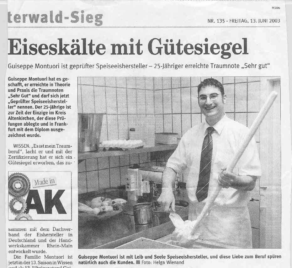 Beim Naschen ein schlechtes Gewissen? Ganz und gar nicht! Dieser Mann kann da ganz unbekümmert mit den Schultern zucken. In seinem Beruf ist ständiges Naschen und Verkosten sogar Pflicht. Für Giuseppe Montuori aber eine besonders schöne. „Eis schmeckt einfach saugut und so bekommen meine Kunden meist nur die Reste“, meint der gelernte Speiseeishersteller augenzwinkernd, was natürlich nicht stimmt. Eis ist seine große Leidenschaft und für ihn fast wie ein treuer Freund, der ihn seit Kindertagen durchs Leben begleitet, quer durch Deutschland an traumhafte Plätze führt und vor allem eines beschert: besondere Begegnungen mit Menschen. Dazu gleich mehr.