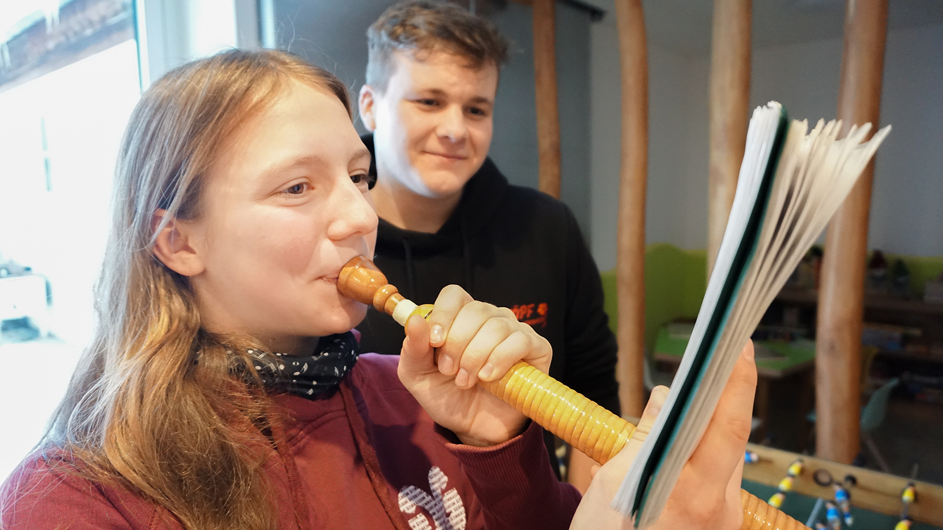 Nach den Ausflügen treffen sie einige der Gäste im Gemeinschaftsraum mit einer kleinen Spielecke, der eher aus Zufall als aus Planung heraus entstanden ist. Dort serviert Martina Köpf auch Kaffee, Punsch, Kekse oder Allgäuer Käse für die Gäste und gerne setzen sie und ihr Mann sich auch für einen Moment dazu. Dann kann es auch einmal sein, dass Sohn Lorenz ein kleines Alphornständchen gibt oder den Gästen das Spielen beibringt. Familienanschluss gehört bei den Köpfs dazu. Und wer lieber unter sich bleibt, hat in dem großen Haus genügend Freiraum.