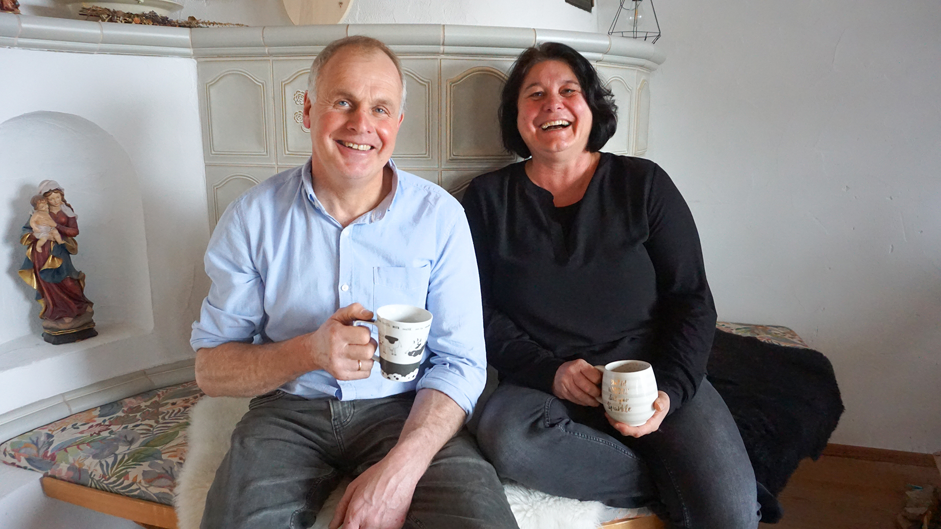 „Da kann ich gar nicht zuschauen, das tut mir weh“, kommentiert ihr Mann Markus Köpf das Eisbad seiner Frau und schüttelt lächelnd den Kopf. Er hat zu Hause den Kachelofen kräftig eingeheizt. „Das ist ihr meistens viel zu warm, aber ich mag das gerne, wenn es draußen so kalt ist.“ Seit 25 Jahren sind die beiden verheiratet und seitdem führen sie zusammen den Hof: Markus Köpf kümmert sich um die Landwirtschaft mit 55 Kühen, seine Frau um die Vermietung der Ferienwohnungen im früheren Stallgebäude. „Beides ist ein Vollzeitjob“, meint der Bauer, der auf dem Hof groß geworden ist. Und seine Frau ergänzt: „Wir machen das mit Liebe, sonst geht das nicht.“