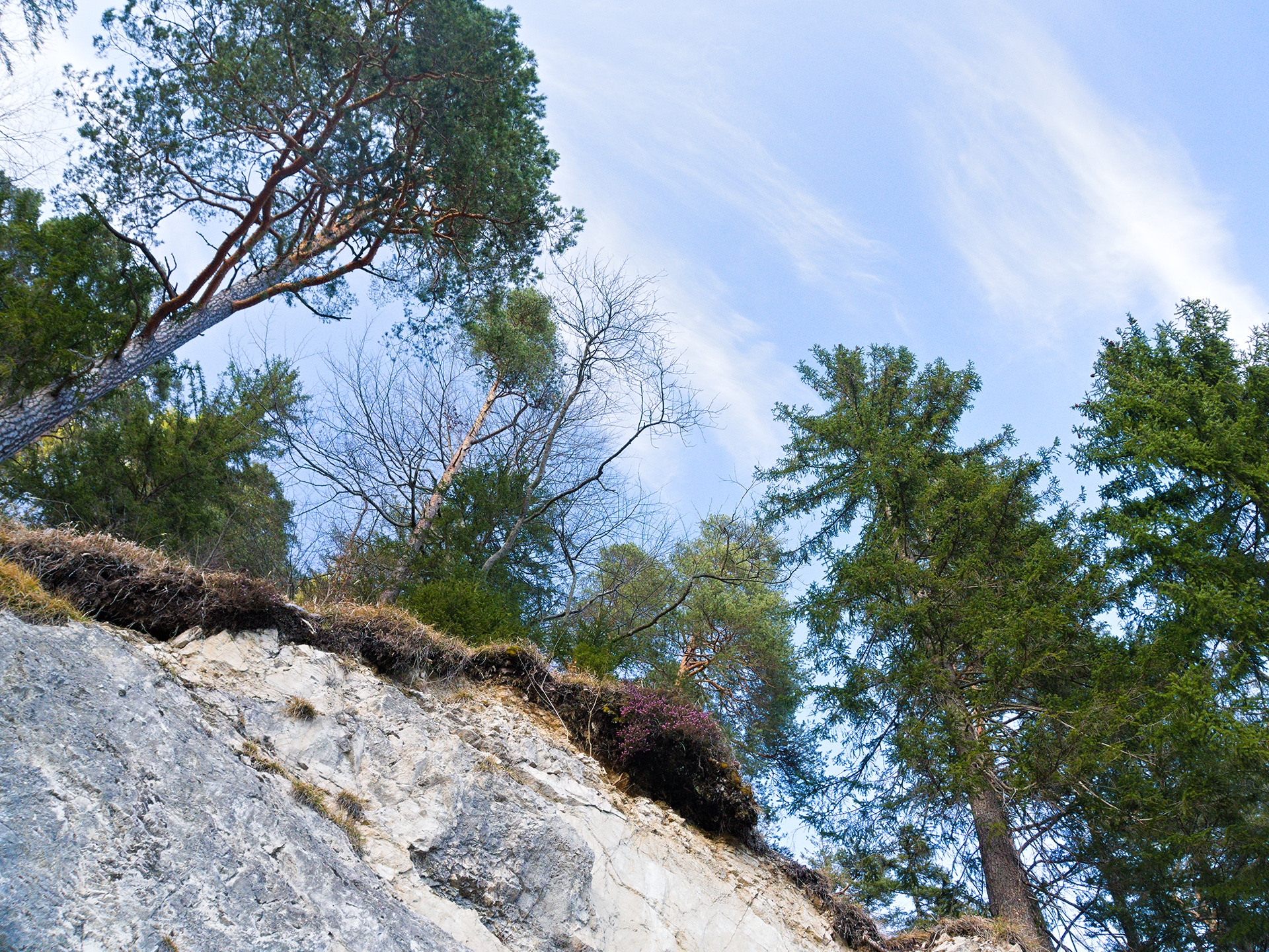 Nachdem unsere erste Aufgabe des Tages erledigt ist, fahren wir ins Faulenbacher Tal zwischen dem Füssener Ortsteil Bad Faulenbach und dem Alatsee. Wir wandern zunächst um den Alatsee herum. Tom weist mich auf eine Buche mit faulenden Stellen hin. Er meint, dieser Baum sei genauso wichtig wie die gesunde Tanne daneben. „Ein solcher Baum ist die Grundlage für neues Leben“, sagt Tom. Spechte können in faulenden Bäumen leichter Nester bauen, und außerdem wimmelt es in Totholz von Leben, das wir manchmal mit bloßem Auge überhaupt nicht erkennen können: Käfer, Würmer, Einzeller, Pilze … Und die wiederum sind Nahrungsgrundlage für zahlreicher Vogelarten wie Kleiber, Waldbaumläufer und Zwergschnäpper.