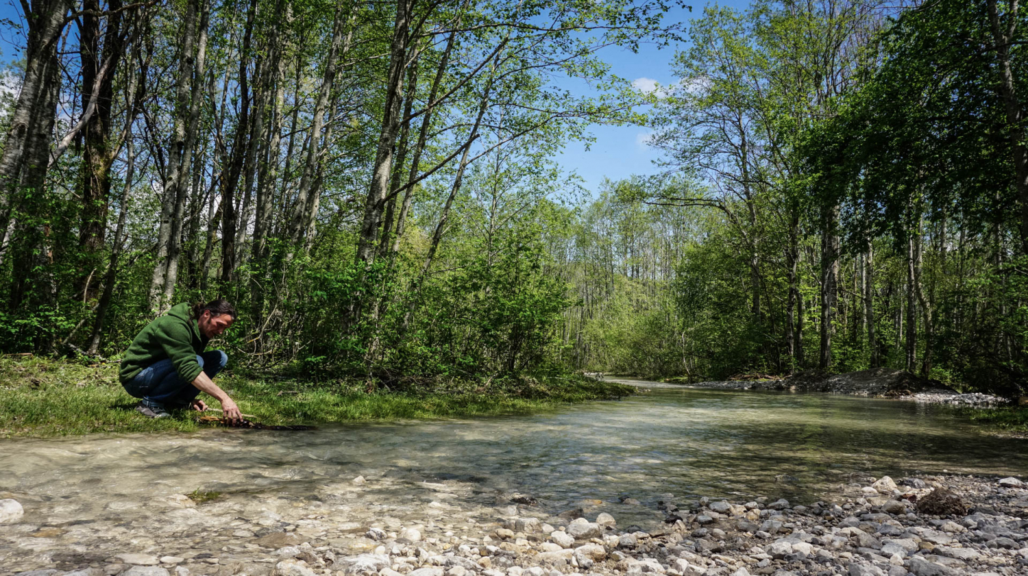 Dass der Künstler meist mit gesenktem Haupt durch Wälder, entlang von Uferböschungen und – bei niedrigem Wasserstand – auch durch den Kiesboden des Lechs streift, hat nichts mit seiner Laune zu tun. Diese ist bei ihm ausgesprochen gut. Er sucht nach Schwemmholz in ausgefallenen Formen und nach schönen Steinen. „Ich gehe ganz langsam mit offenen Augen durch die Natur, um alles zu erfassen. Manchmal stecken die Schätze noch im Sand oder in Büschen drin. Dabei verliere ich mich wunderbar in der Landschaft.“