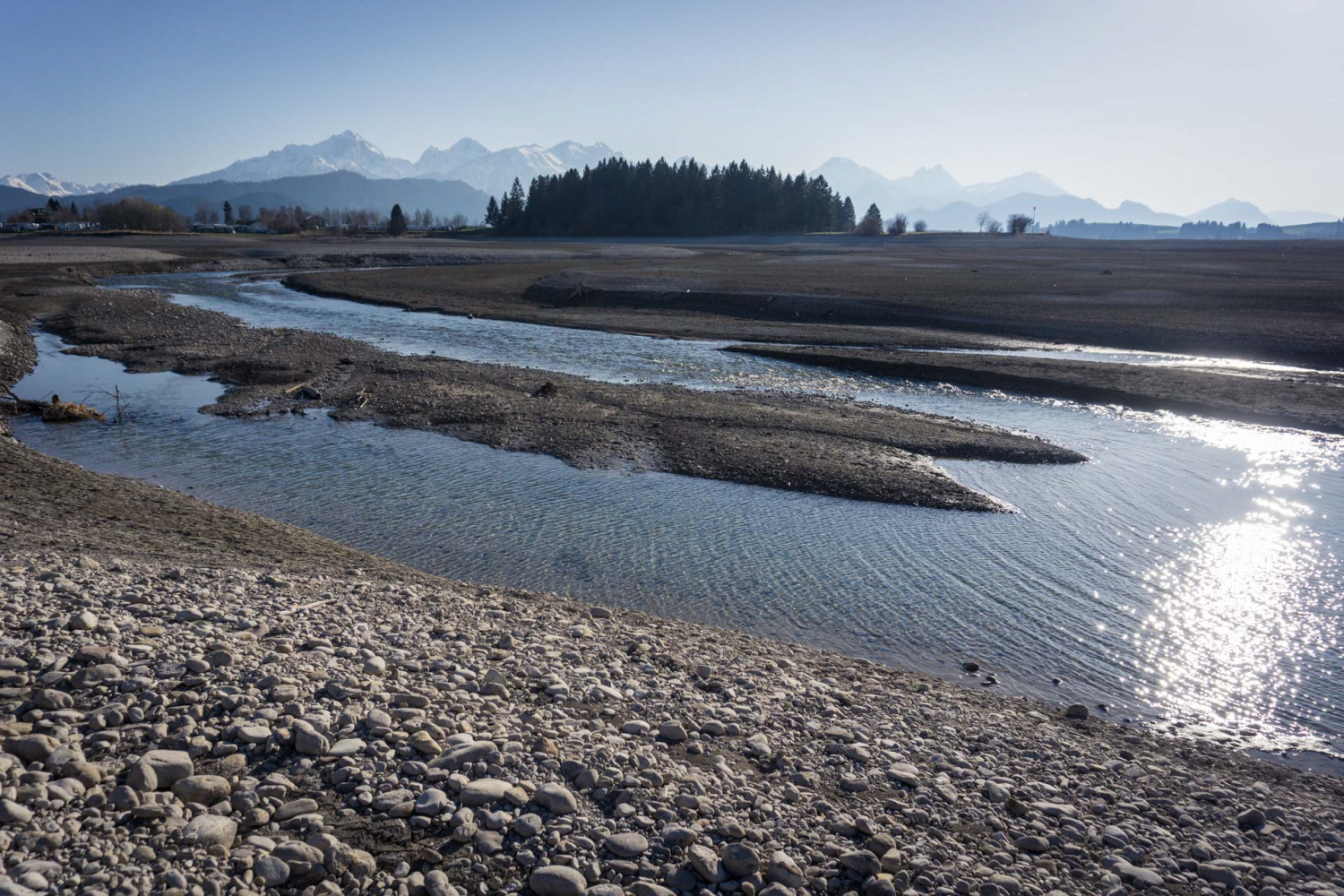 Das geht tatsächlich nicht. Auch wenn man dem Forggensee das im Sommer nicht ansieht: Er ist ein vom Lech durchflossener Stausee und mit über 15 km² Fläche der größte in Deutschland. Jeden Winter wird er nach und nach abgelassen, um die Versorgung der Wasserwerke zu sichern, die lechabwärts liegen. Der Stausee dient der Stromerzeugung und zudem als Hochwasserregulierung bei der Schneeschmelze im Frühjahr.