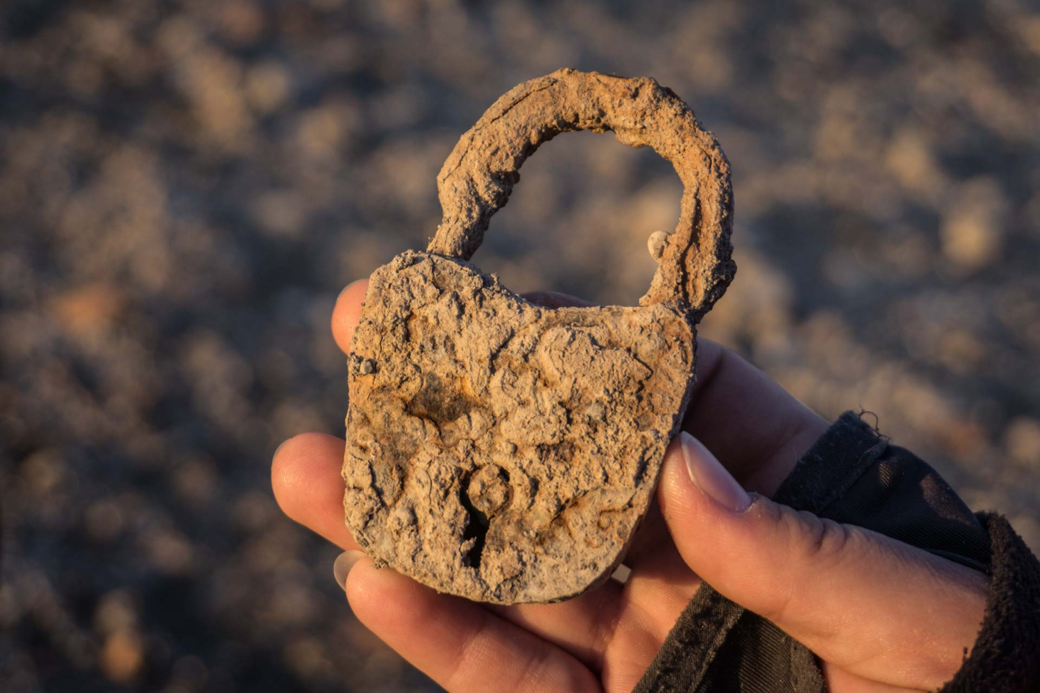 Seinen Namen hat der See vom ehemaligen Weiler Forggen, der zusammen mit zwei weiteren Ortschaften in den 1950er Jahren geflutet wurde. Jedes Jahr, wenn der See leer ist, gibt der Boden wieder Fundstücke wie dieses Schloss frei.