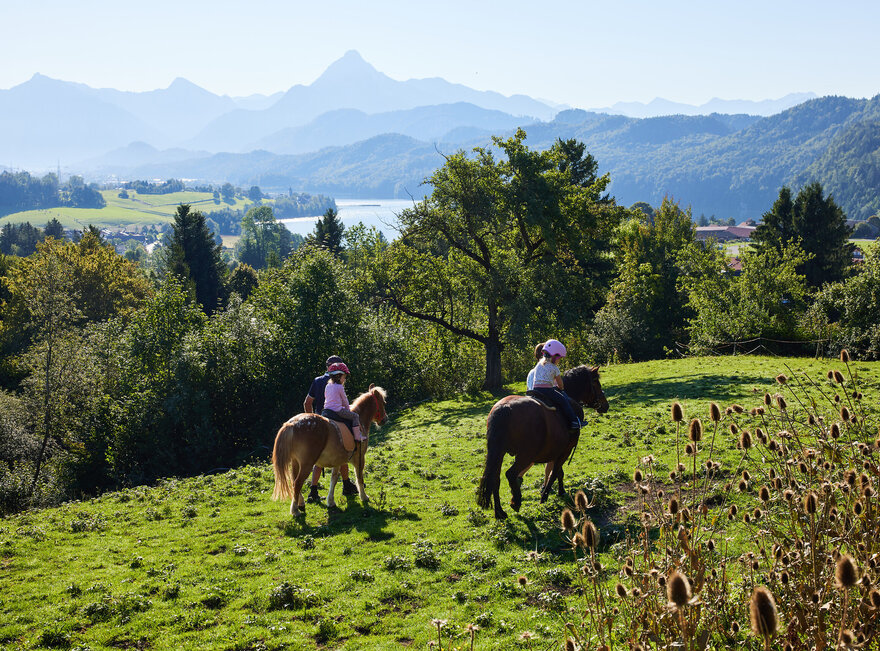 - Angebote: für Kinder Ponyreiten entlang des Forggensees und für Fortgeschrittene gibt es geführte Ausritte.