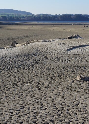 Wussten Sie, dass Sie im Winter durch den Forggensee wandern können? Im Herbst, wenn der Pegel des Sees langsam sinkt, kommt der Seegrund zum Vorschein - eine mondähnliche Landschaft, in der man Schwemmholz und andere Schätze sammeln kann.