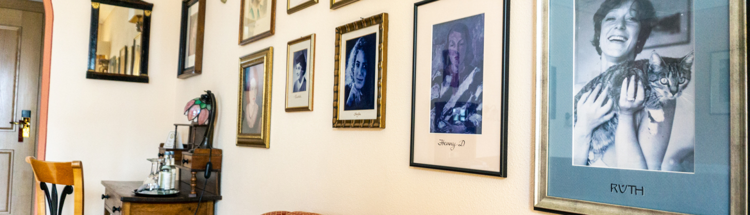 Ohne Bilder ist das Haus ohnehin nicht vorstellbar. Über 500 Gemälde, Zeichnungen, Skizzen und historische wie aktuelle Fotografien hängen an den Wänden. So wandeln Gäste fast in wie in einer Galerie durch die Flure und Stuben – und bekommen dabei schöne und interessante Einblicke u.a. in die Stadtgeschichte. So ist beispielsweise Füssen in verschiedenen Epochen zu sehen. Es lohnt sich also, sich Zeit zu nehmen und die Fülle an Bildern in Ruhe anzuschauen – und auch die anderen ungewöhnlichen Details, die in den Zimmern und Fluren stehen, zum Beispiel ein antikes Chorgestühl.