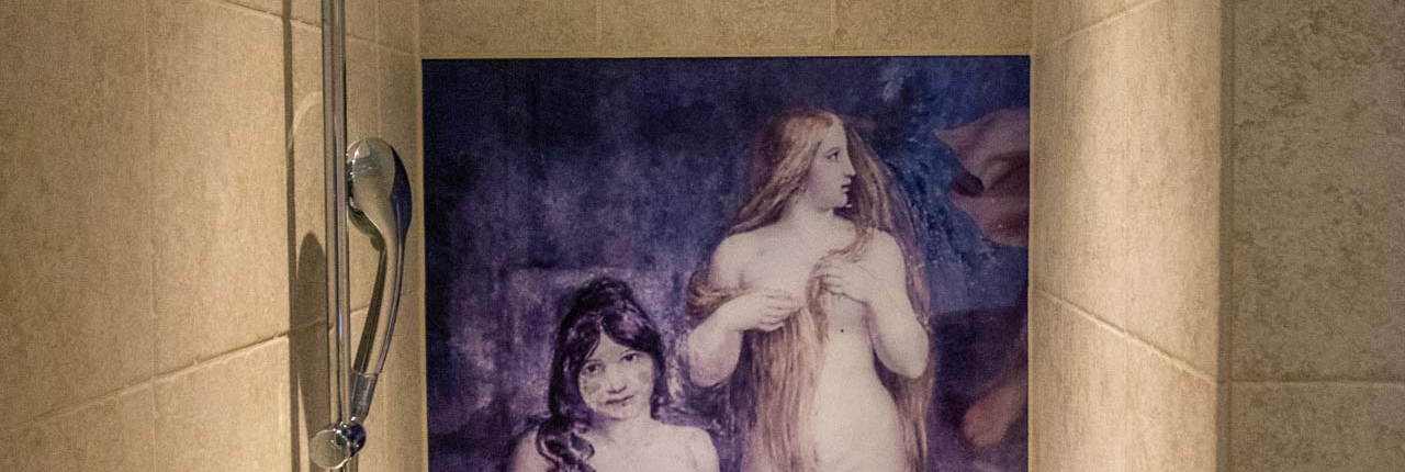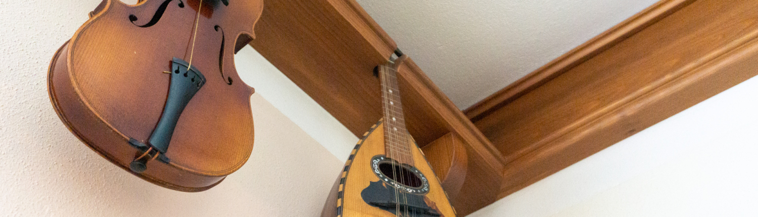 Auch in der Familie selbst gab und gibt es einige Künstler. Ein Zimmer ist dem Münchner Grafiker und Großonkel von Eva und Harald Schwecke, Max Bletschacher, gewidmet. So hängen dort einige seiner Zeichnungen und die Dusche ist mit einer Kachel seiner Darstellung des Minotaurus aus der griechischen Mythologie verziert. Oma Klara Bletschacher hat trotz ihrer langen Arbeitstage als Gastgeberin viele der antiken Schränke und Truhen bemalt und Onkel Richard Bletschacher, ehemaliger Chefdramaturg der Wiener Oper, verfasste das erste Buch zur Historie des Füssener Geigenbaus, bei dem ihm Opa Fritz mit seinem reichen Bilderfundus unterstützte. „Wir sind wohl alle in der Familie künstlerisch nicht so ganz talentfrei“, meint Harald Schwecke schmunzelnd. Seine Mutter Christine Bletschacher hatte übrigens die vielen Ideen für die Motivzimmer im Stammhaus. „Das ist ganz ihr Bereich“, erzählt Harald Schwecke, „da kann sie sich kreativ ausleben und fordert damit auch die Handwerker heraus.“