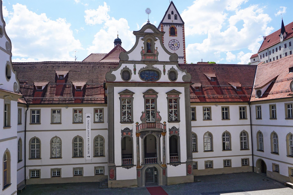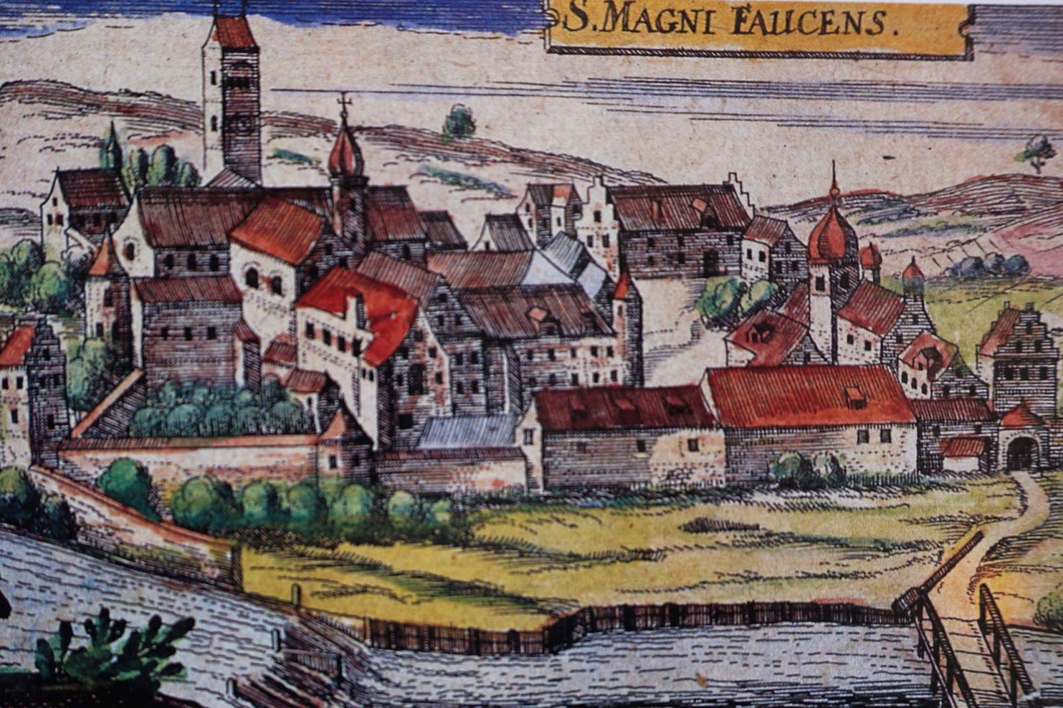 Im 9. Jahrhundert gründete der Bischof von Augsburg am Ort der Mönchszelle, in der Magnus in Füssen bis zu seinem Tod gelebt haben soll, das Benediktinerkloster St. Mang. Dessen Kreuzgang als einziger spätromanischer Bau in Füssen ist teilweise noch erhalten und über das Museum der Stadt Füssen zu besichtigen. Anfang des 18. Jahrhunderts wurde das Kloster nach Plänen von Johann Jakob Herkomer auf den mittelalterlichen Grundmauern im barocken Stil neu erbaut und „beherbergt“ heute neben dem Museum auch das Rathaus.