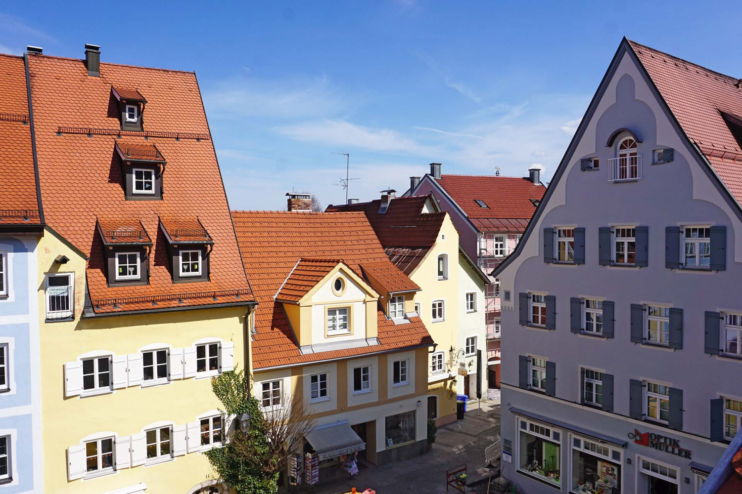 Die enge Bauweise bewahrte die Altstadt in ihrem mittelalterlichen Erscheinungsbild, denn es war schwierig, dazwischen ein Haus um- oder auszubauen oder durch einen Neubau zu ersetzen. Man hätte dabei ganze Häuserblöcke oder Straßenzüge verloren. Trotzdem gibt es Bausünden in der Altstadt. „Bevor diese unter Denkmalschutz gestellt wurde, hat Füssen schon viel verloren. So wurden beispielsweise die Stadttürme abgebrochen. Zum Glück hat man aber noch rechtzeitig den touristischen Wert von Füssen erkannt und begonnen, das mittelalterliche Ensemble zu schützen“, meint Joachim Zeune und ergänzt: „Obwohl es für die Einwohner kaum Möglichkeiten zum Parken oder Anliefern gibt, habe ich immer das Gefühl, dass sie es wertschätzen, an so einem schönen Lebensort zu wohnen.“ Fast autofrei macht es umso mehr Spaß, Füssens Nischen, Hinterhöfe und Durchgänge zu Fuß zu erkunden, an der Stadtmauer Eis zu schlecken und bei Sonnenschein zum Himmel zu gucken und die schiefen Giebel, Malereien und Skulpturen an den bunten Häusern zu bewundern. Das Mittelalter lässt grüßen!