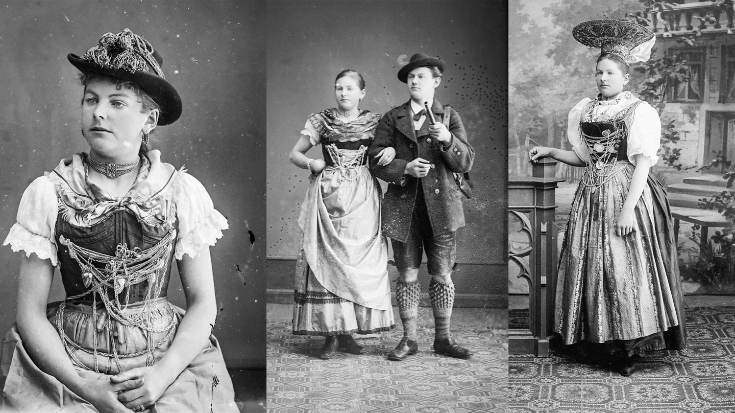 Bei seinen Recherchen muss Richard Hartmann schon genau hinschauen. Dieses Bild des Füssener Stadtarchivs entstand zum Beispiel Ende des 19. Jahrhunderts und stammt aus der Sammlung des ortsansässigen Ateliers Ludwig Schradler. Man könnte vermuten, dass dies Aufnahmen von Füssener Bürgern in ihrer traditionellen Tracht sind. „Vermutlich ließen sich hier aber Touristen ablichten, die vom Fotografen mit diesen Kleidungsstücken kostümiert wurden, um typisch „füssnerisch“ zu erscheinen“, erklärt Richard Hartmann.