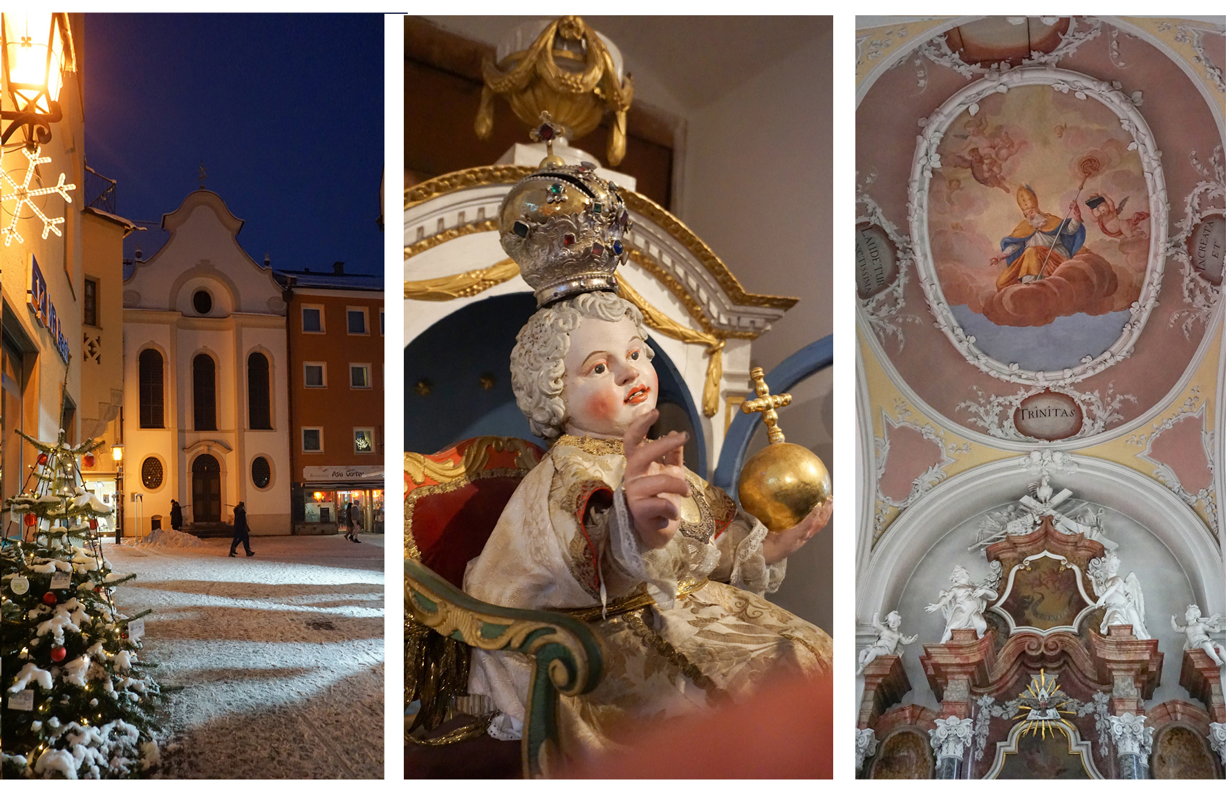 Wie er da so Wange an Wange mit den anderen Altstadthäusern steht, fällt der barocke Kirchenbau der Krippkirche St. Nikolaus von 1717 kaum auf. So unauffällig in der Reichenstraße gelegen, ist die Kirche selbst auch ein Versteck für eine Besonderheit – und Mesner Bruno Ehrentreich ist jedes Jahr einmal in geheimer Mission als möglichst unsichtbarer Engel in der Stadt unterwegs. Dann trägt er das „offizielle“ Christkind der Stadt, das hinter dem prächtigen Hochaltar in der Sakristei fast ein Jahr auf seinen Einsatz gewartet hat, von der Krippkirche in die Stadtpfarrkirche St. Mang. Dort wird es im Anschluss an die Kindermette am 24. Dezember feierlich und stolz durch die Stadt wieder zur Krippkirche gebracht, auf dem Altar im Thron platziert und mit einem Weihnachtslied besungen. Den Brauch gibt es seit Anfang der 1980er Jahre. Lange Zeit lagerte das Christkind vergessen in der Kirche St. Sebastian, wo es der Vorsitzende des historischen Vereins Alt-Füssen, Magnus Peresson, als damaliger Kirchenpfleger im Sakristeischrank entdeckte. Der damalige Stadtpfarrer ließ es restaurieren und initiierte die kleine, feierliche Prozession für das Jesuskind.