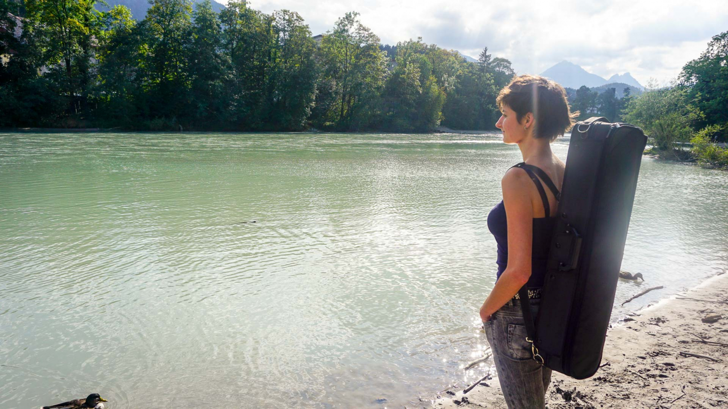 Als ich ein bisschen am „Schwalbenlech“, d.h. auf der Kieselbank unten am Lech entspanne und ein kaltes Fußbad nehme, treffe ich nochmal Felicitas Fischbein, die als Meisterschülerin beim Festival vielsaitig dabei ist. Wie recht sie damit hat, dass in Füssen alles so nah beinander liegt. Davon hatte sie gestern gesprochen. Wir unterhalten uns und gucken einfach auf das vorbei fließende Wasser. Wie wohltuend und unangestrengt. Langsam zieht es ein bisschen zu und ich überlege, zum Kurcafé zu laufen. Dort gibt es nämlich eine großartige Köstlichkeit, über die ich mehr erfahren will.