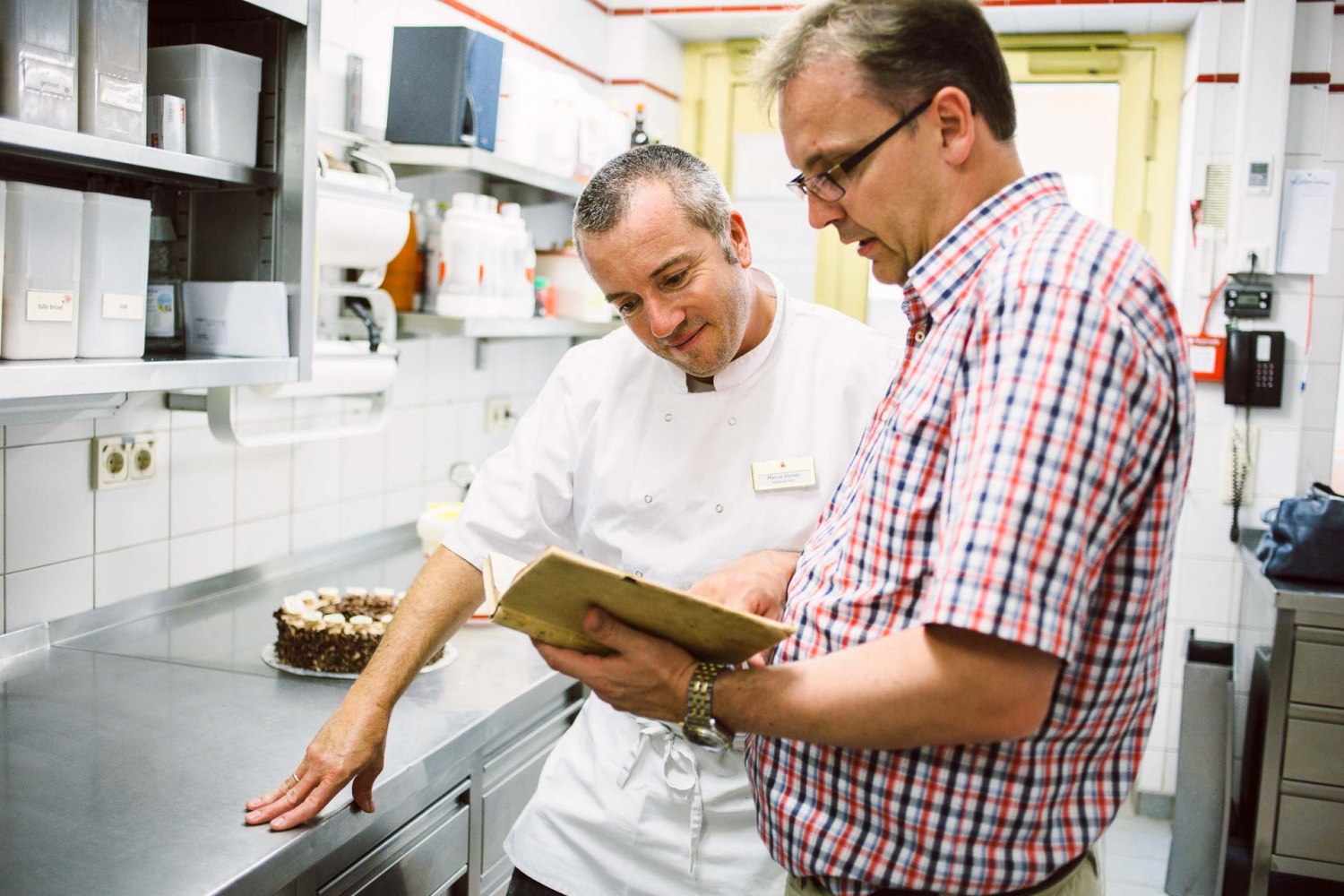 Der heutige Besitzers des Kurcafés Norbert Schöll erzählt, dass sein Urgroßvater die Konditorei im Jahr 1896 eröffnete und mit seinen Torten, Trüffeln und Kuchen die Gaumen betuchter Gäste und Hoheiten verwöhnte. In dem alten Rezeptbuch seines Urgroßvaters suchte er nach den Zutaten und der Zubereitung für die Sissi-Torte. Und eigentlich ist diese eine Herrentorte.
