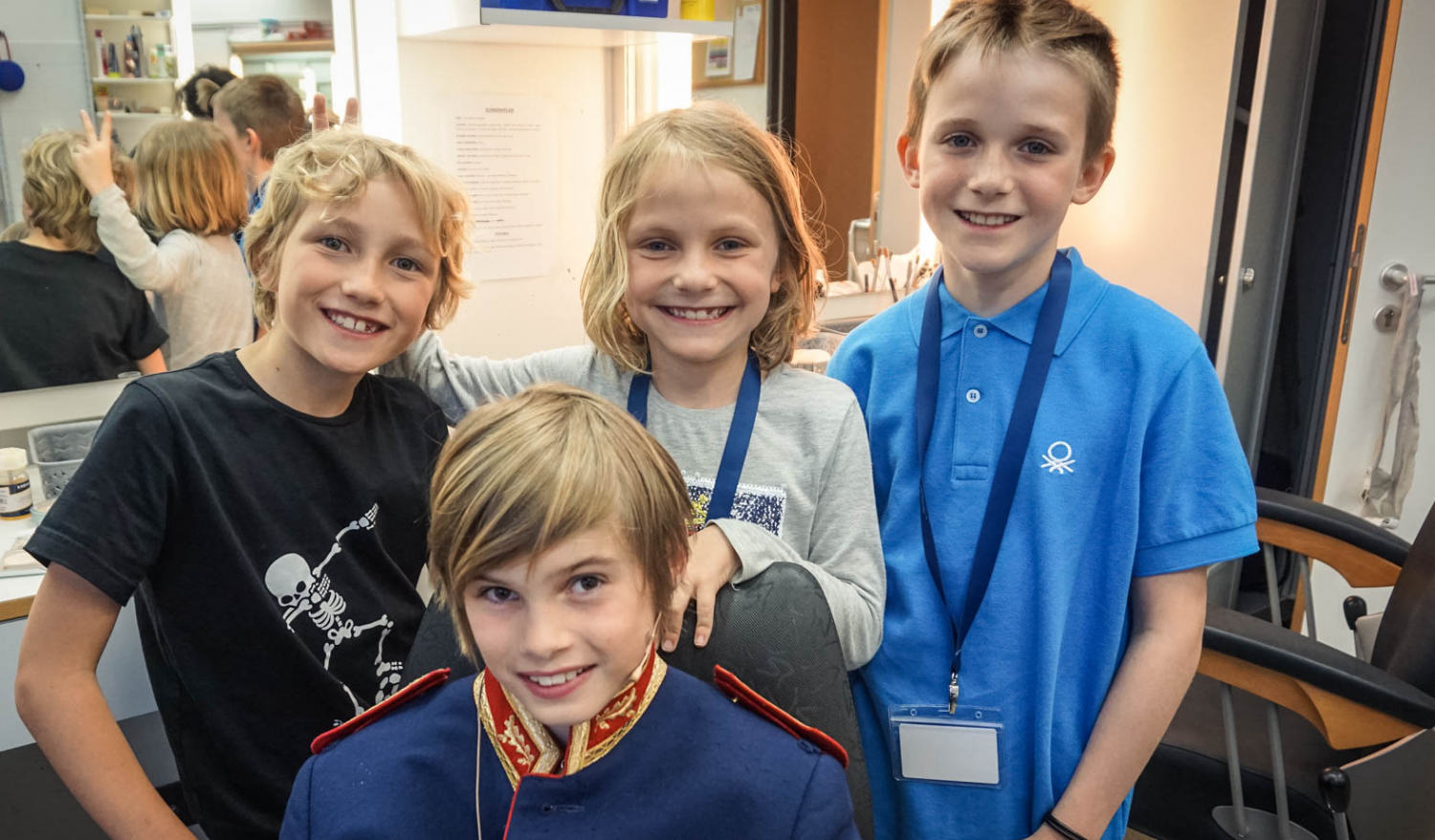 Auf ihren Auftritt freuen sich diese vier Jungs. Sie alle mimen Ludwig in seiner Kindheit. Insgesamt sind es sogar zwölf kleine Prinzen, da die Veranstaltungen auch unter der Woche laufen – und am nächsten Tag Schule ist. Wer abends auftritt, darf aber eine Stunde später zum Unterricht kommen. Zwei Prinzen reisen extra aus Stuttgart und dem Saarland an.