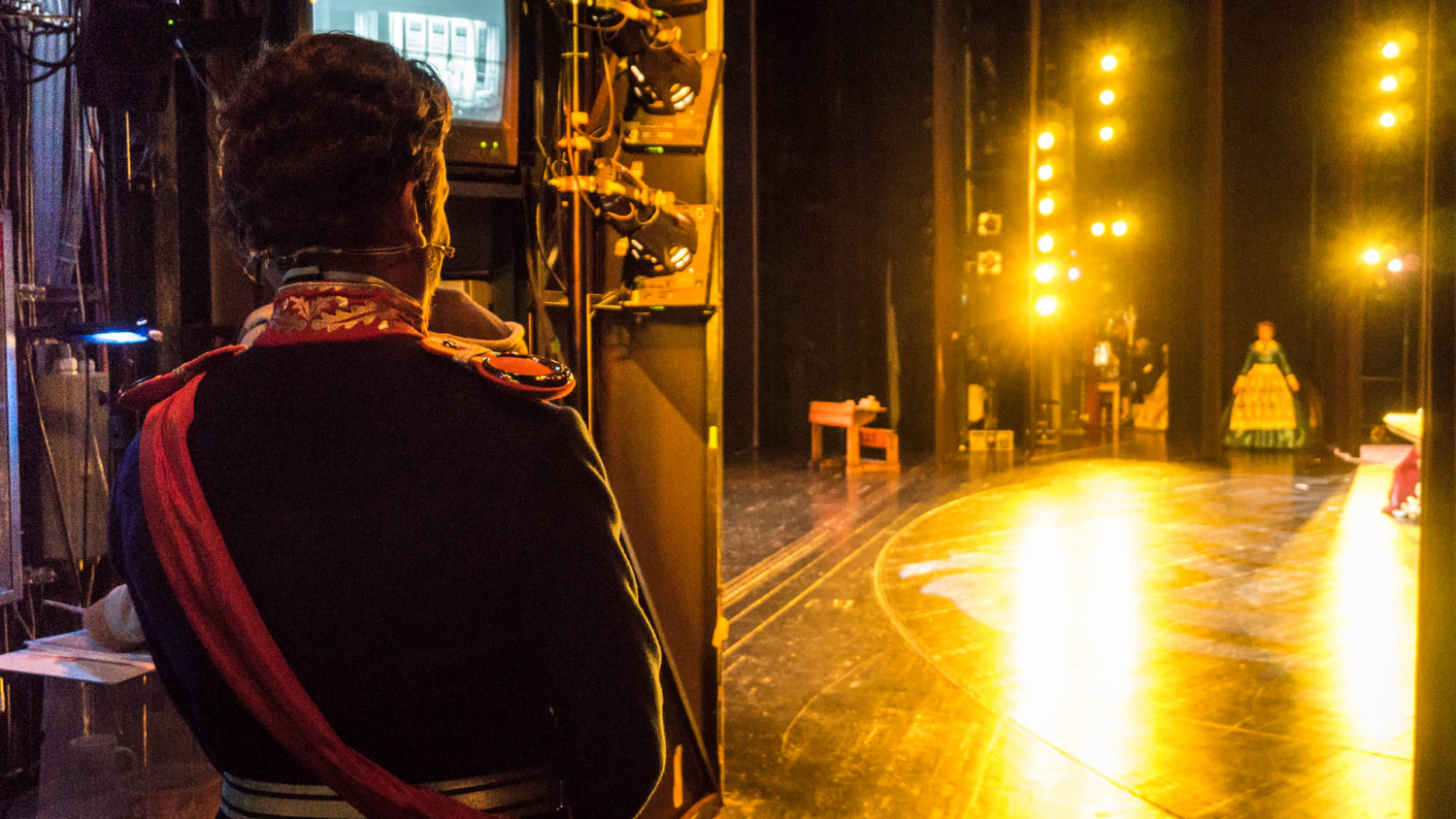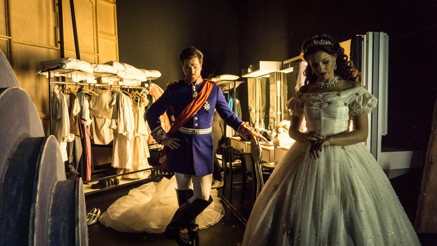 Noch ein paar Minuten, dann kann die Generalprobe laufen. Die Hauptdarsteller Jan Ammann und Anna Hofbauer als Sissi nehmen sich hinter der Bühne noch ein paar Momente, um sich zu fokussieren und den Auftritt im Geist nochmal durchzugehen. Alles, was für das Stück erarbeitet und erprobt wurde, muss jetzt als großes Gewerk ineinander greifen: Schauspieler und Sänger müssen auf den Punkt präsent sein, Bühnen- und Lichttechniker ihre Lichtstimmungen exakt setzen und der Soundmann wissen, wann und wo die Mikros auf sein müssen.