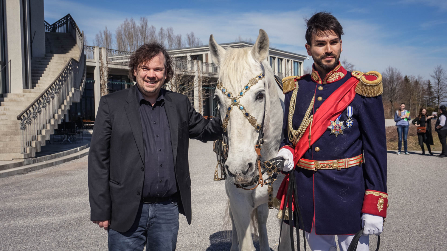 Hinter den Kulissen gibt es noch viel zu tun, bevor die neue Ludwig²-Spielzeit am 16. Mai startet. So müssen neben den Proben für Darsteller und Technik, z.B. die aufwendigen und schweren Kostüme geändert und Kulissen ausgebessert werden. Inhaltlich wird jedes Jahr weiter an Details gefeilt, auch Publikumswünsche hat Regisseur Benjamin Sahler im Blick. Viele hatten von der Urfassung noch den Auftritt eines echten Pferdes in Erinnerung. Ist und bleibt es doch das Symbol eines Traumritters. So wird dieses Mal wahrscheinlich Hengst Travieso für kurze Zeit auftreten. Erst einmal muss sich der Schimmel aber an die Bühne und den hohlen Klang der Bretter unter seinen Hufen gewöhnen.